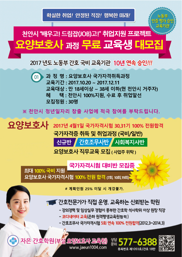 요양보호사 과정 무료 교육생 모집(천안시 지원)